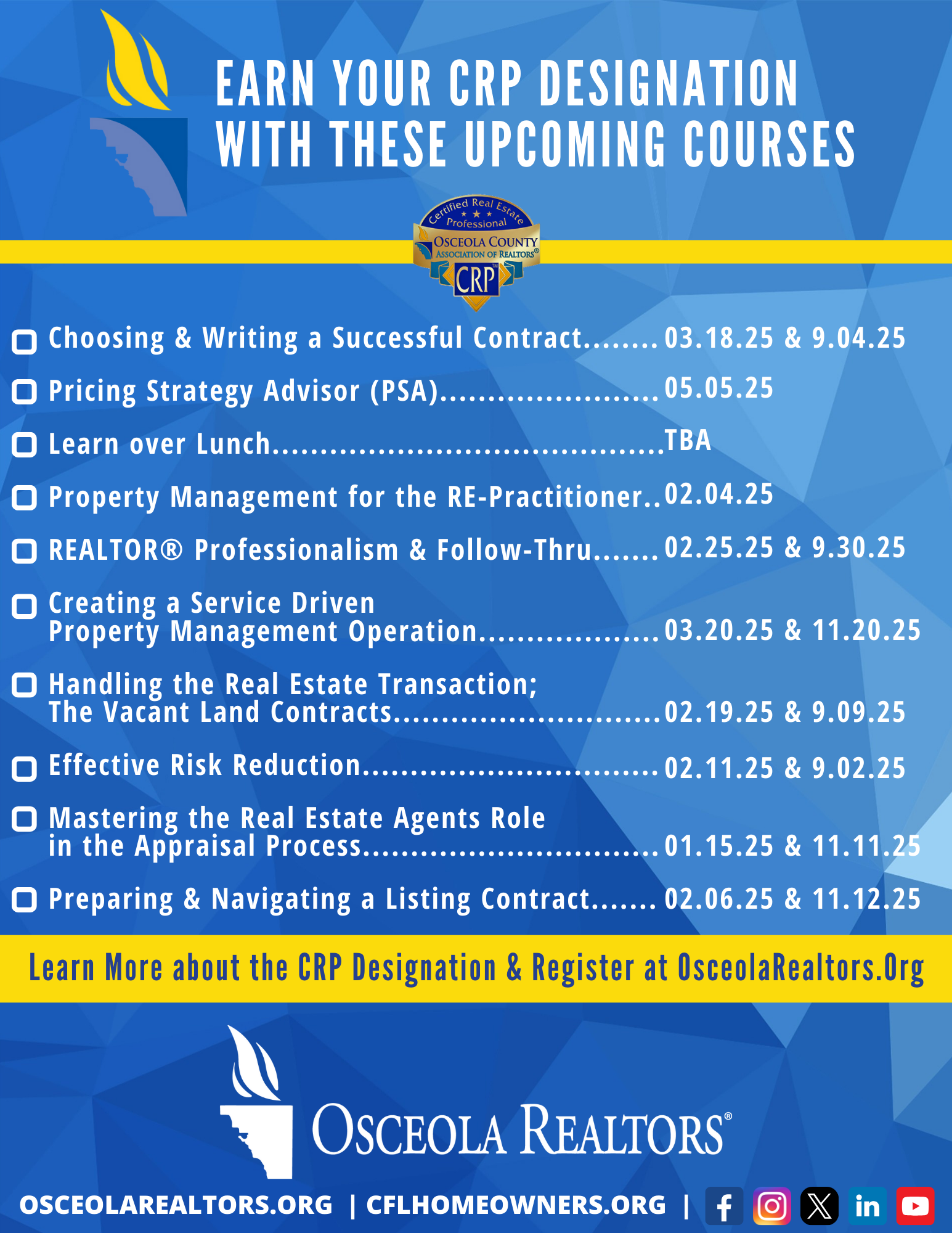 - Must be in good standing with the Osceola County Association of REALTORS®